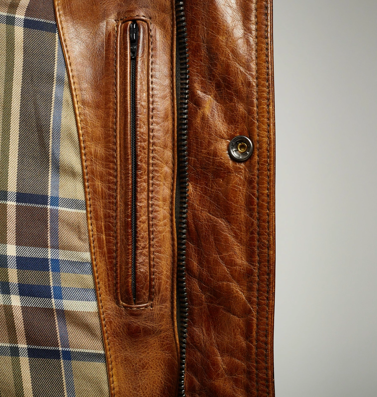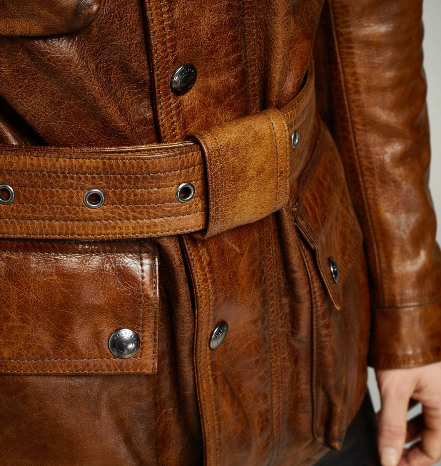 The iconic Belstaff Tourist Trophy jacket is updated for the serious biker, with removable D30 T5 EVO X Range elbow and shoulder protection that meets European CE safety standards, as well as a new fit for the female rider. In black Signature 6oz. waxed cotton, this jacket is both luxurious and highly durable, with a seam-sealed Miporex membrane between the shell and the lining. Choose this classic four-pocket design, with slanted left chest pocket for easy access when on the bike, and feel the authenticity of Belstaff’s moto heritage alongside expertly integrated safety measures, as well as considered design in the form of under-arm metal vents and an embroidered logo buckle cover.