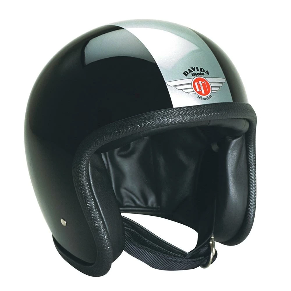 Davida helmets are the only certified motorcycle helmets to be Made in England, using fibreglass composite shells & EPS shock absorption liners, fitted with a leather goggle-strap retainer & are secured using webbing strap & Double D rings.