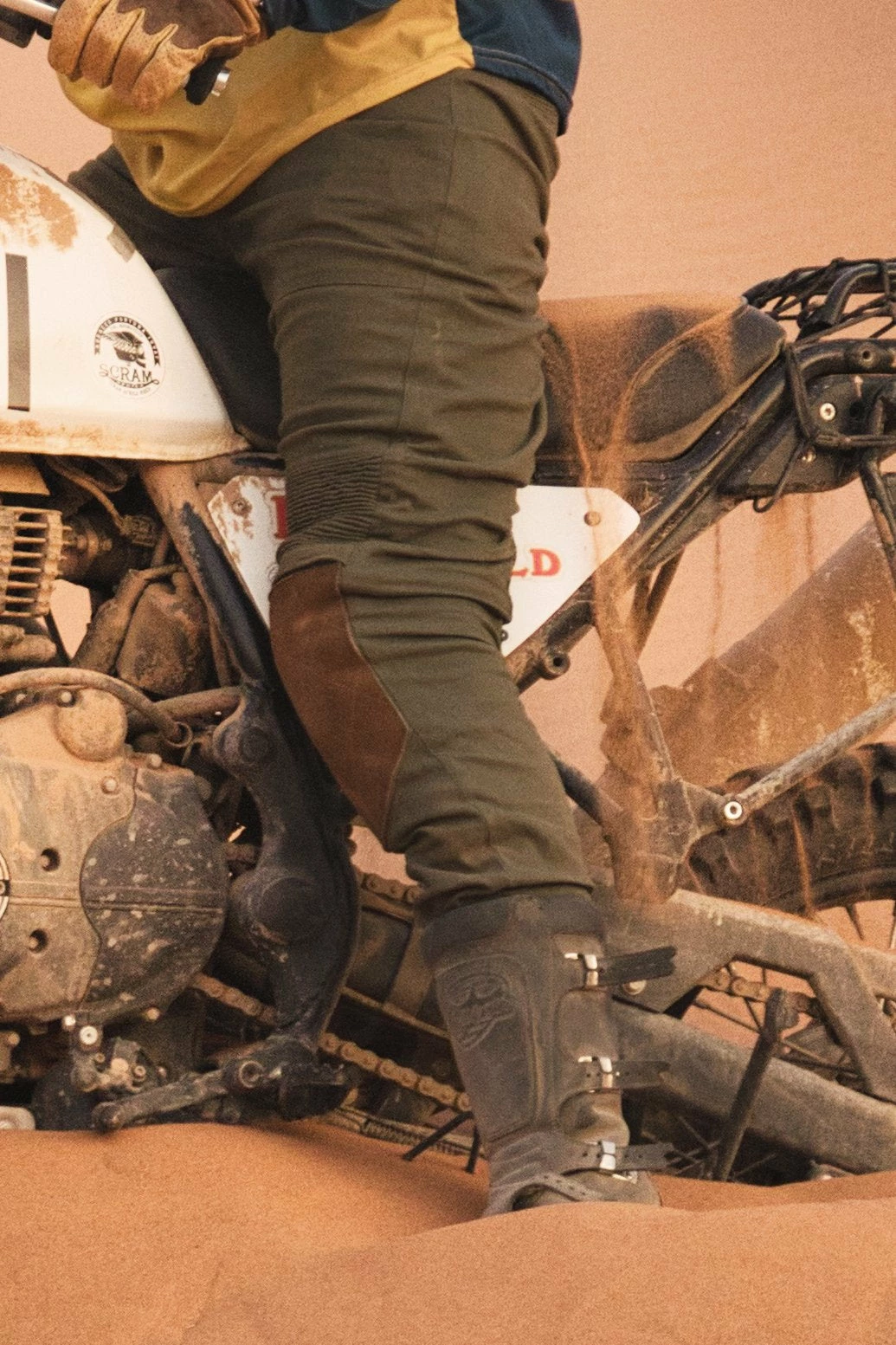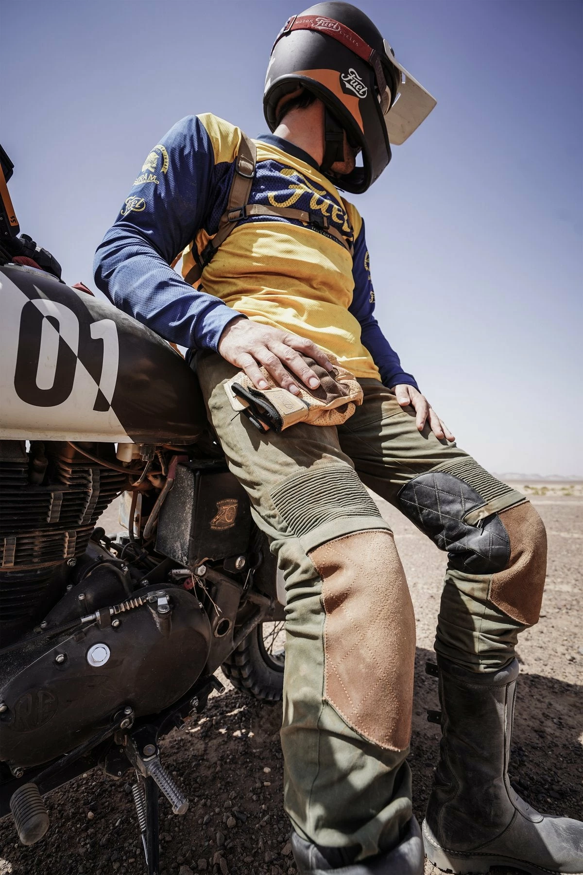An olive coloured exterior, a suede knee panels quilting and black leather parts give the Captain pants a style of their own. These are a Fuel favourite that complement just about any style of ride.