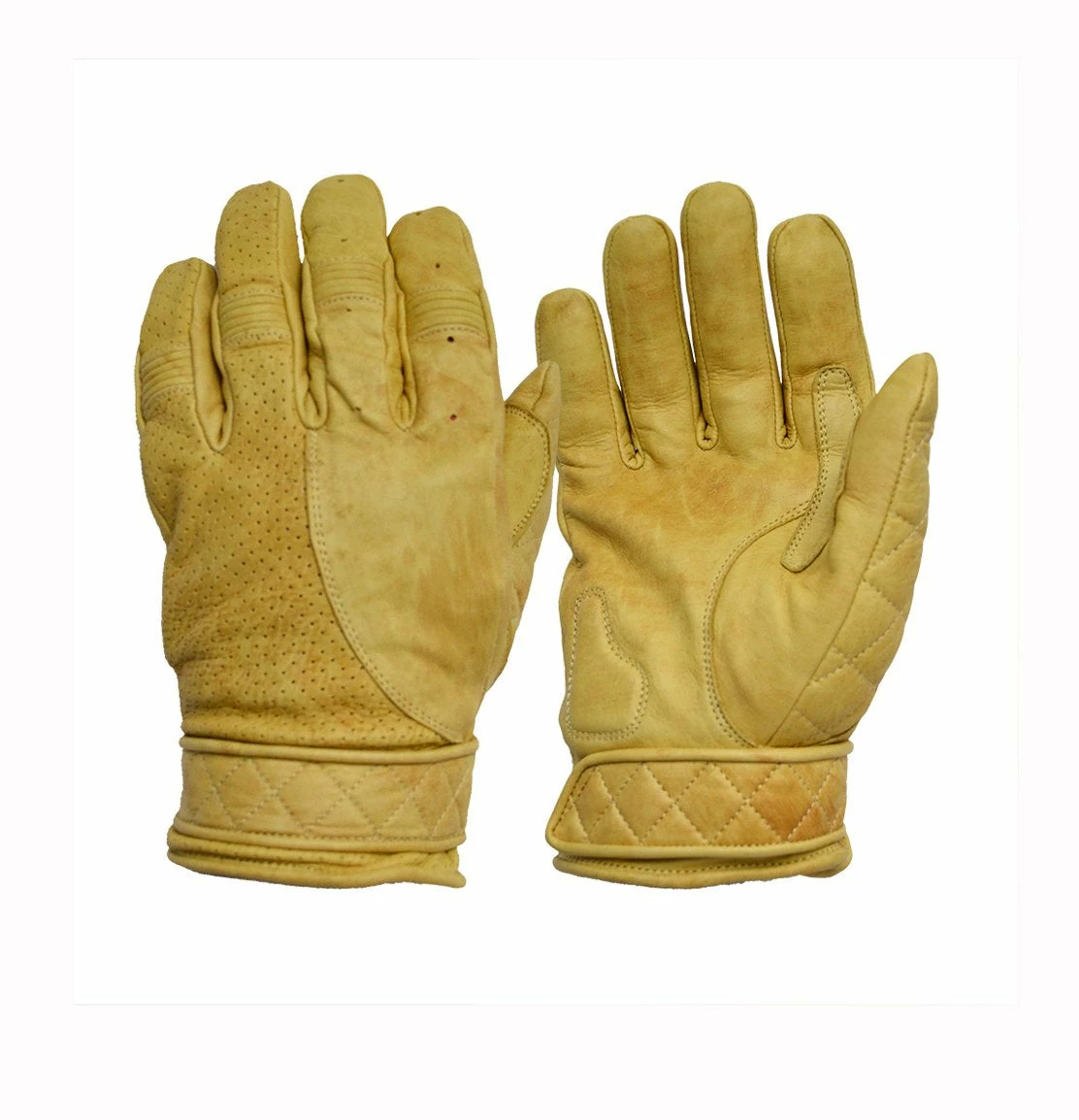The short bobber motorcycle gloves are a tighter fitting pair of gloves designed for ultimate comfort when riding. With a reinforced palm and finger/thumb area, these gloves are built to last, and come with a quilted leather, velcro wrist fastening to safely secure your fit. This quilting, plus other perforated and ribbed stylings ensures that these gloves provide that classic yet modern cafe racer look. Lined with traditional red fleece, these gloves are are perfect for warm weather riding from spring through summer and autumn too!