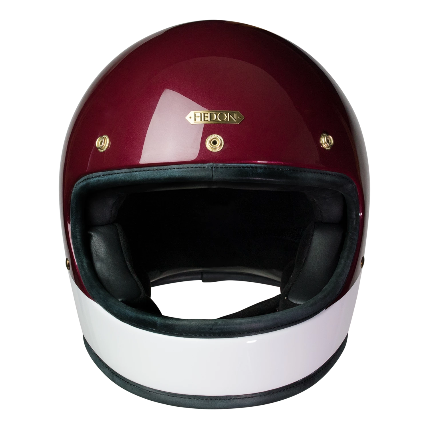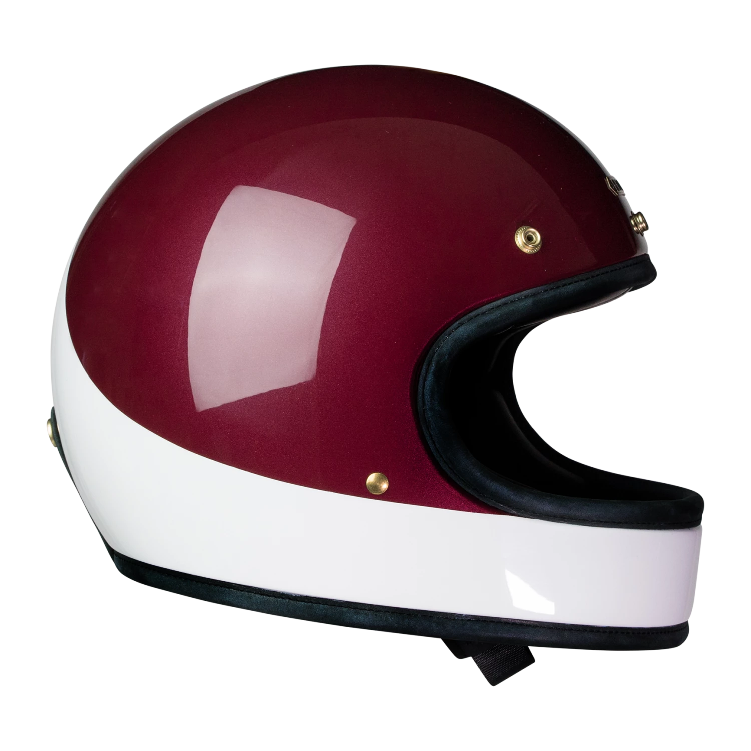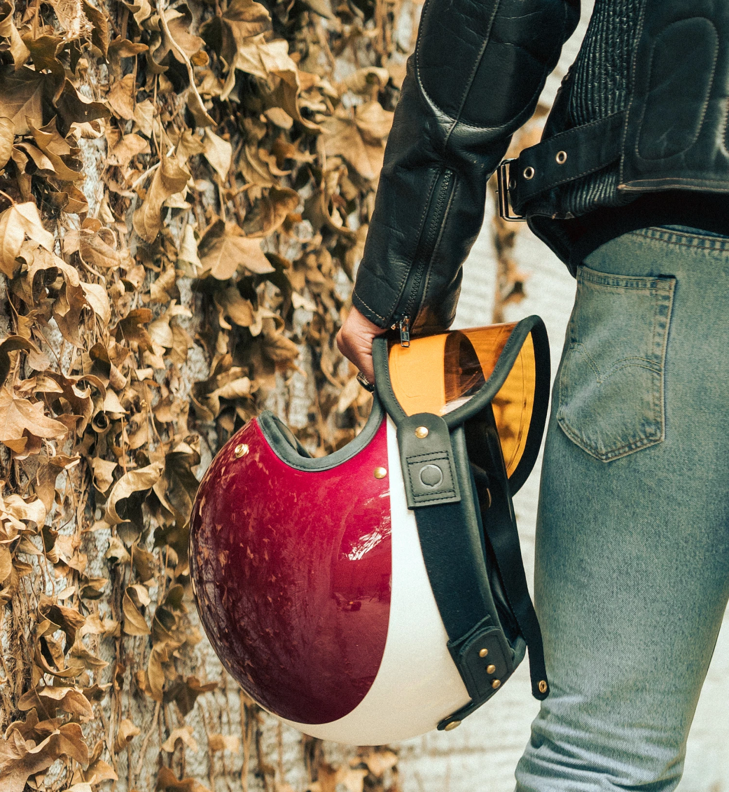 Heroine Classic offers the riding freedom and vision of an open face Hedon lid whilst keeping your pretty face as safe as a full face. Designed in London and handmade with a classic British retro style, it can be customised with our Anti-Fog goggle visors and Sun Peaks for a vintage racing look.Â