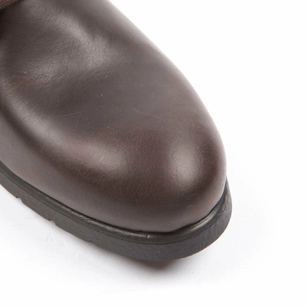 Handmade calf skin fully lined leather motorcycle boots in brown.