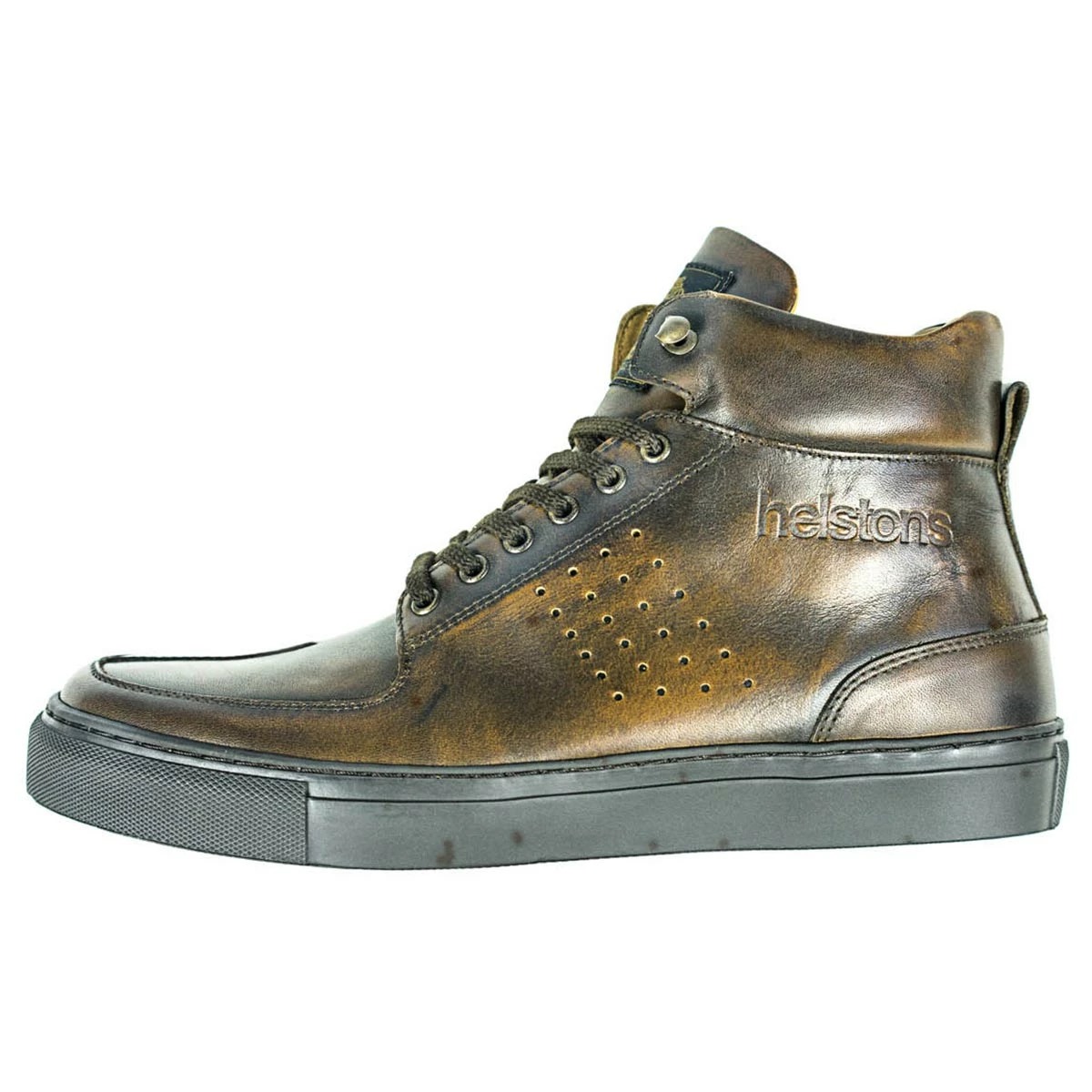 The Helstons Glen is a sneaker style motorcycle boot. It is made entirely from calfskin that has been waterproof treated. The boot is also fully lined in calfskin. There are protectors in the ankles. The toe and heel areas are also reinforced and there is a shank in the cushioned sole for torsional rigidity. The boots are made in Europe and are CE approved.