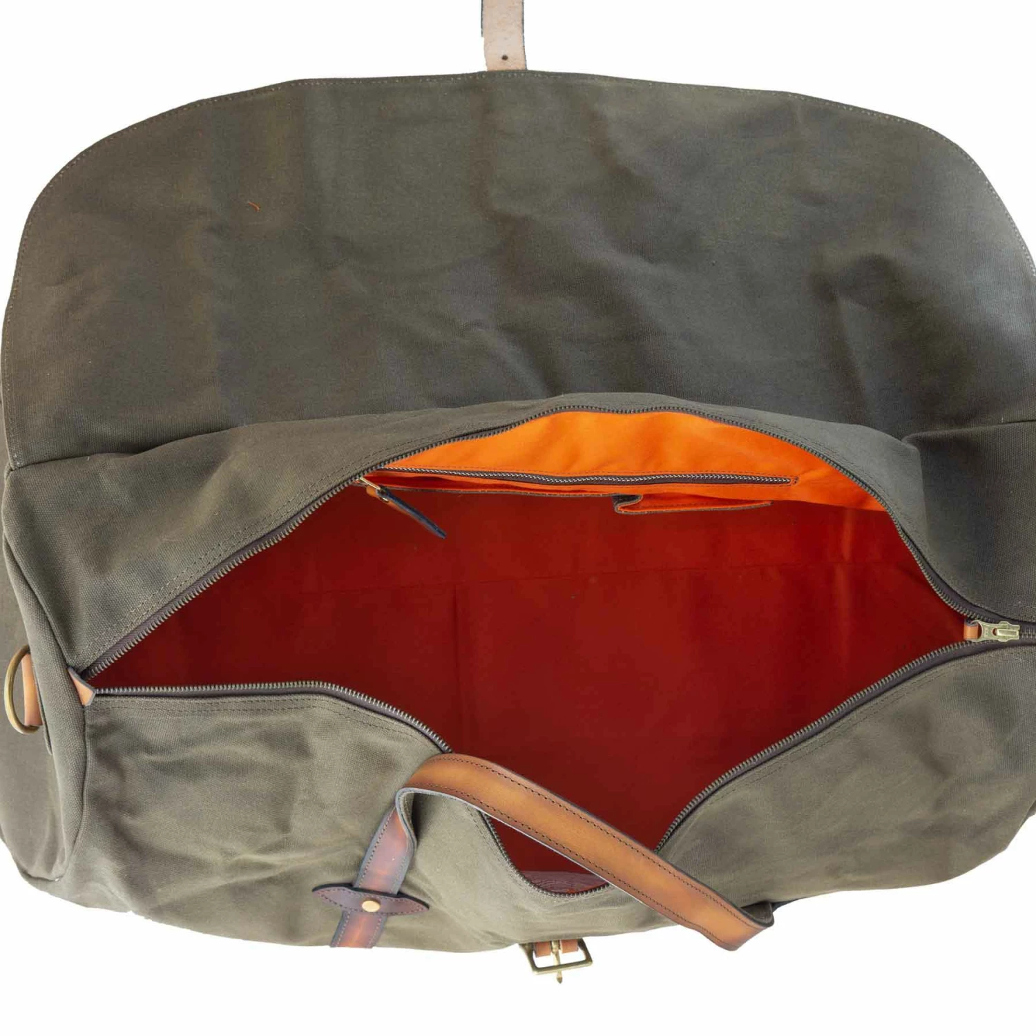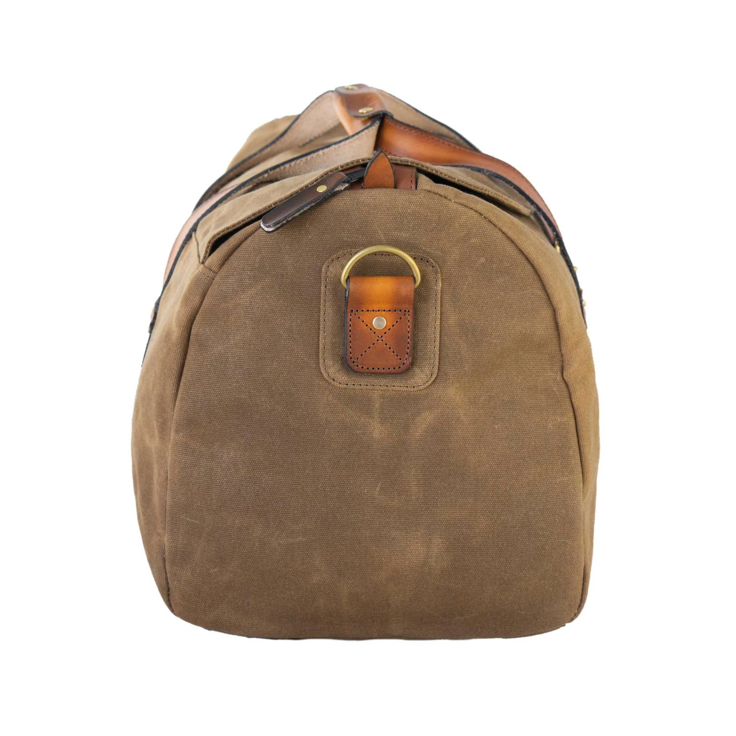 - Veg-tanned leather handles stitched are reinforced to the side of the bag. The upper handles are backed with another layer of waxed canvas and can be bound together with the leather grip guard.Â