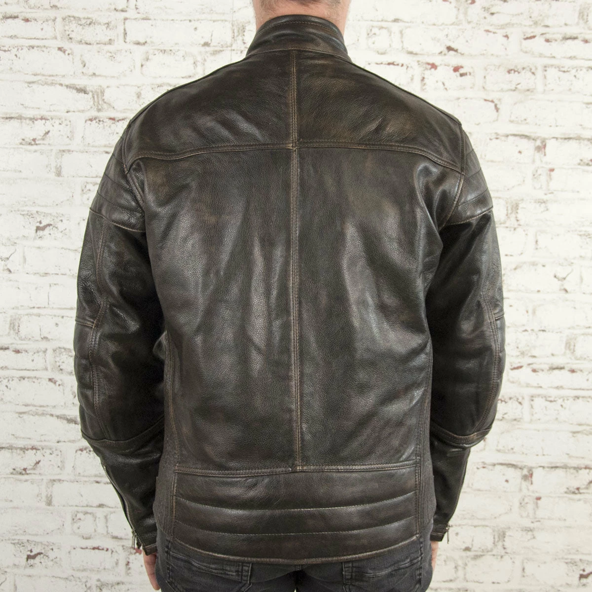 No need to play the guitar like Jimi Hendrix, Rock n’ Roll is a state of mind! This attitude will be yours with the Rocker Leather Motorcycle Jacket. Here is the jacket which will follow you everywhere, in your best and your worst moments. In a design reminding of the mythical perfecto jackets, it’s made of a thick leather that is elegantly aged, as if you have worn it for ages. Up to you to make it your second skin …