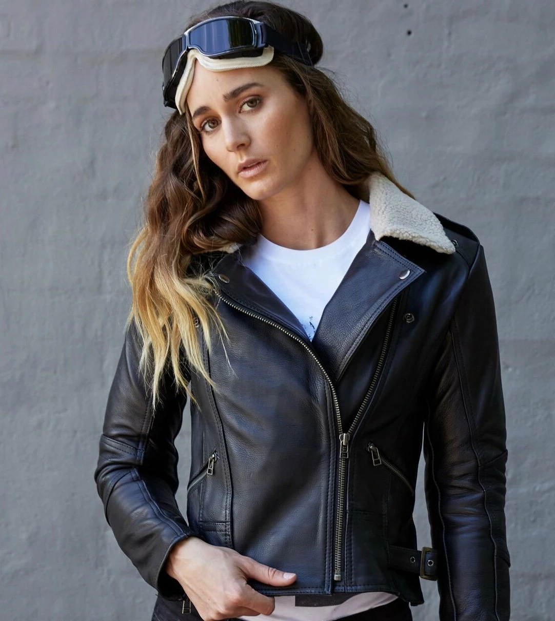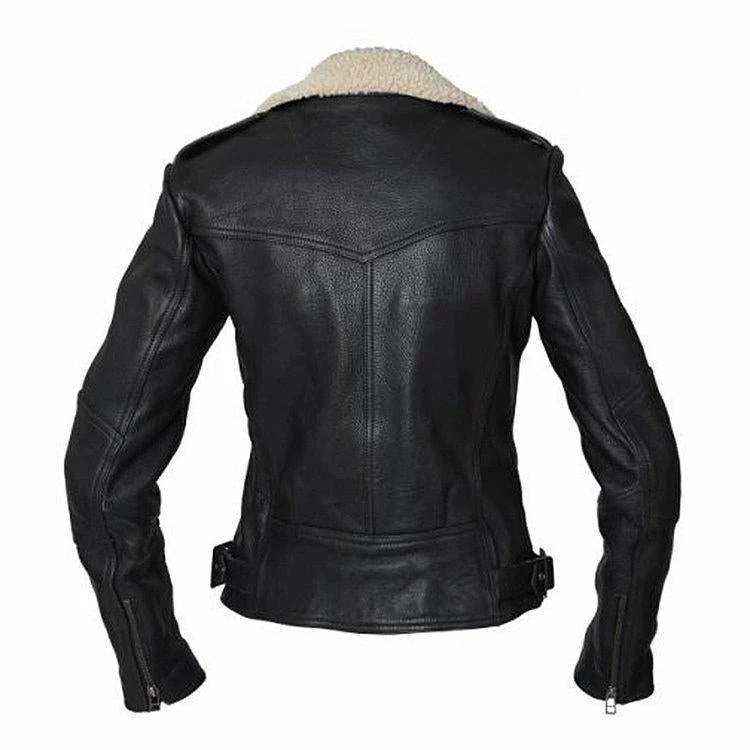 An aviator style faux fur collar leather jacket. This jacket is the second edition, with a few changes for comfort and wearability off the bike, with satin lining and natural milled leather. Â