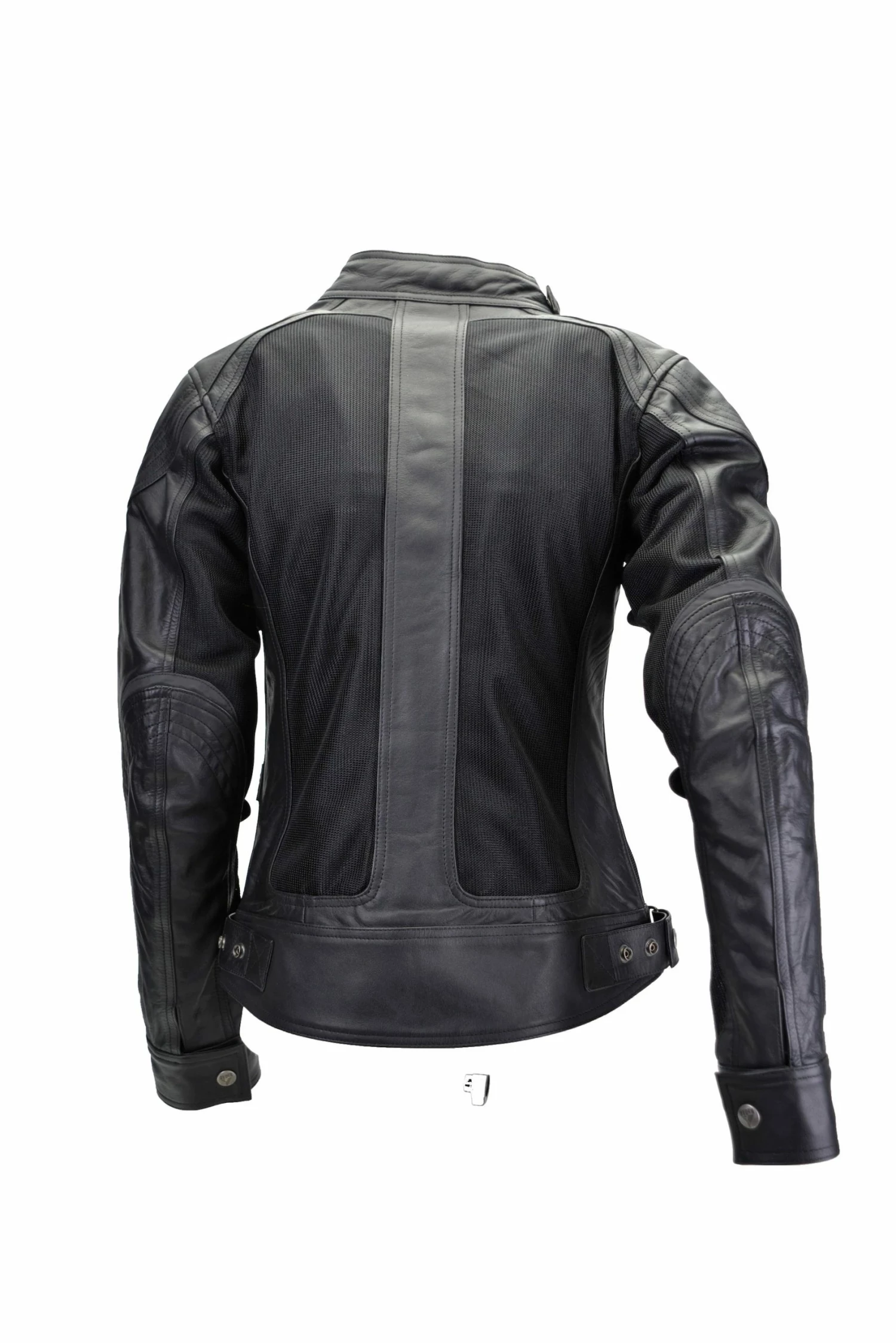 This ladies Sahara jacket combines high quality leather with high abrasion resistance mesh. It is the perfect combination for the hot months, certified to CE standard prEN17092-4: 2018 at level A, with removable protectors to the elbows and shoulders “Flexishock” (level 2 EN1621-1: 2012) and a pocket for back protection.