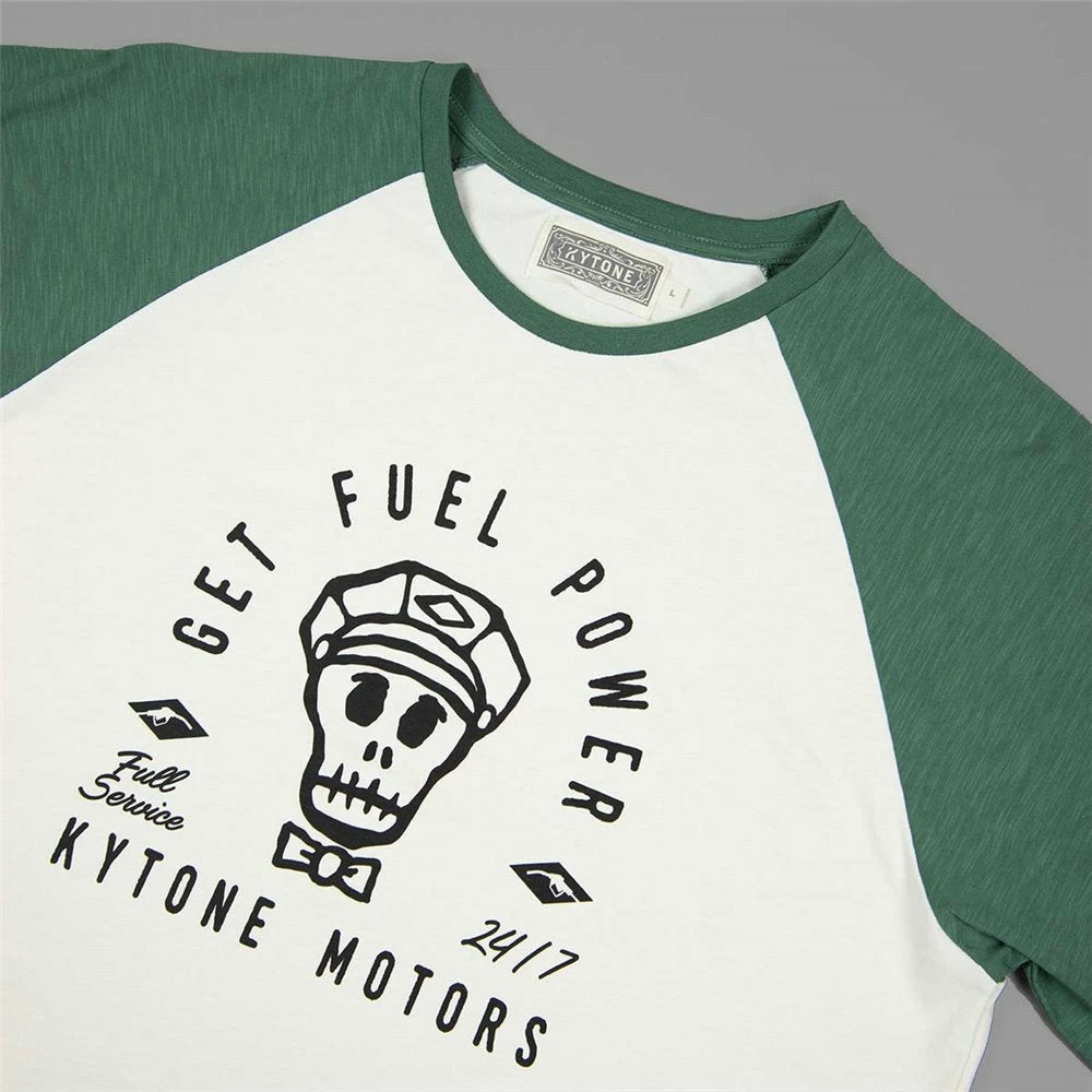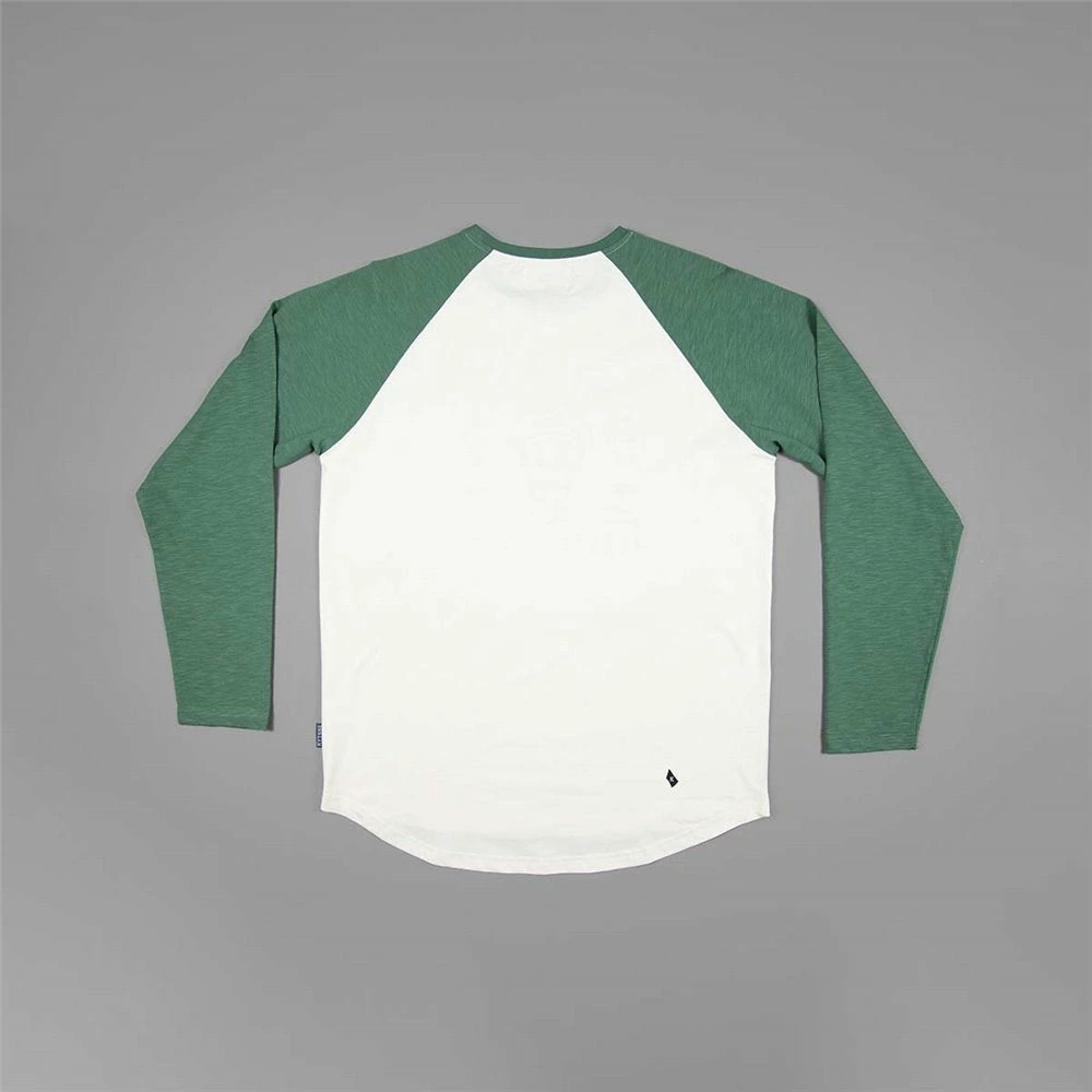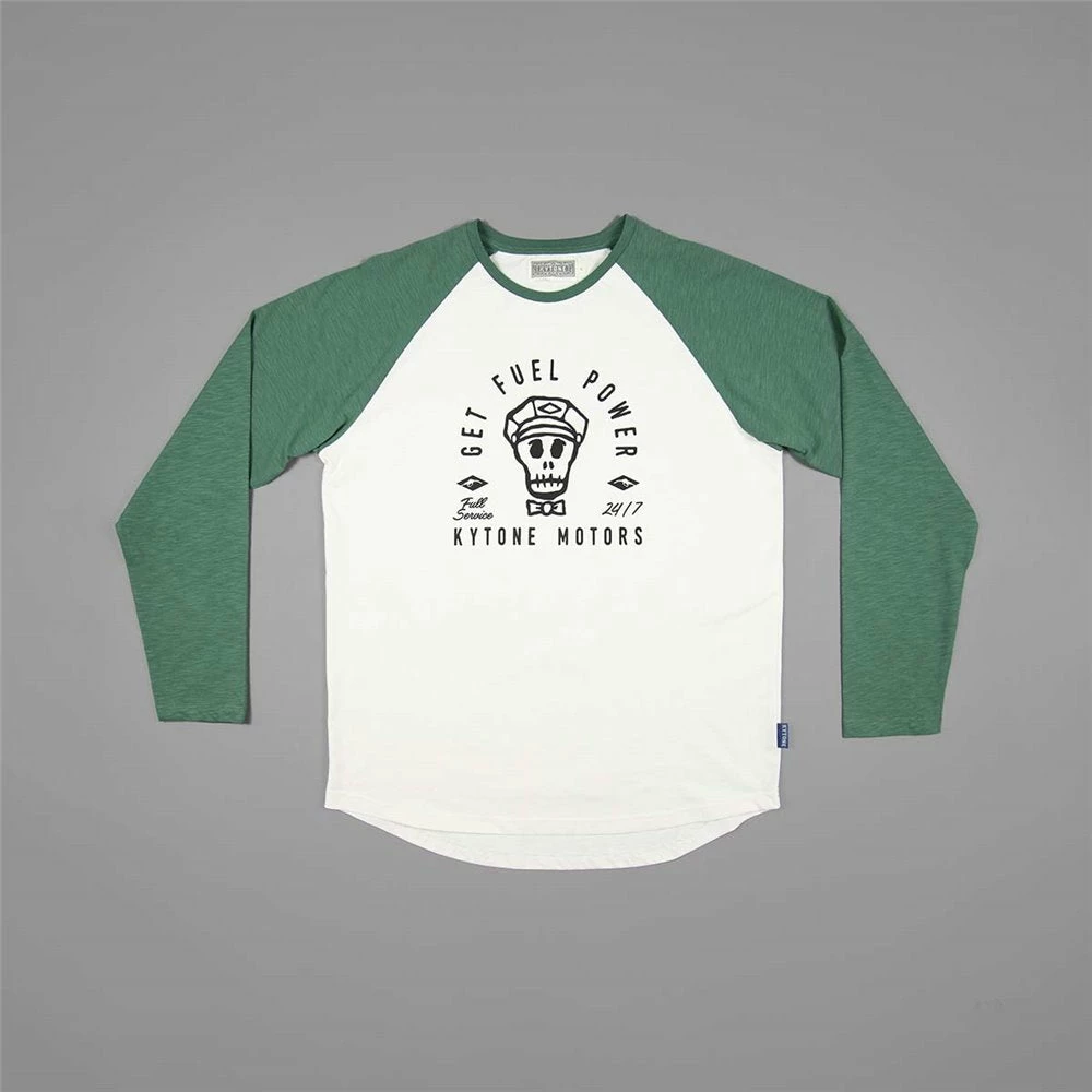 Off white long sleeves T-shirt, with green flammé cotton sleeves