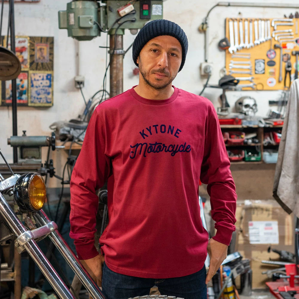 A long-sleeved T-shirt, cotton 200gms, to face the first frost? This is the red Tromso with Kytone typography.