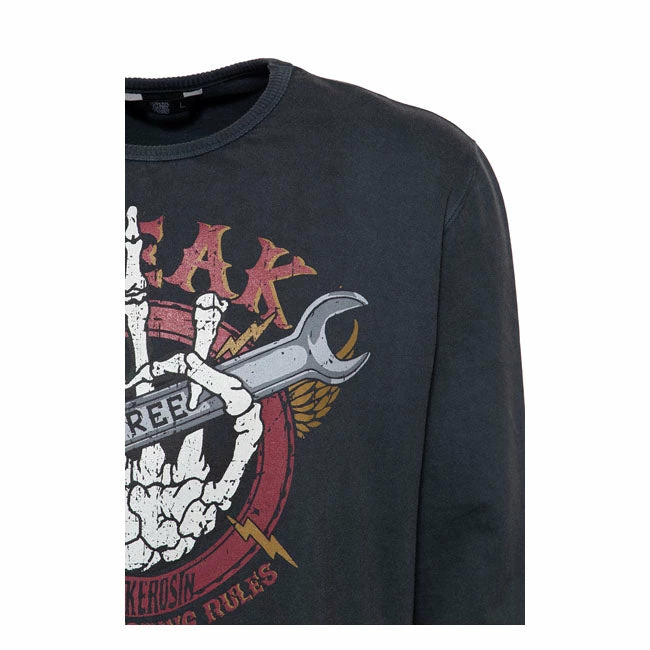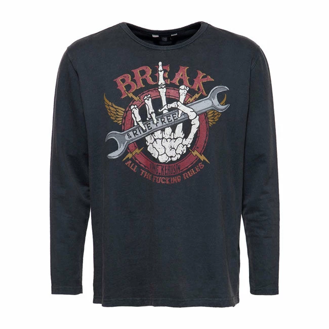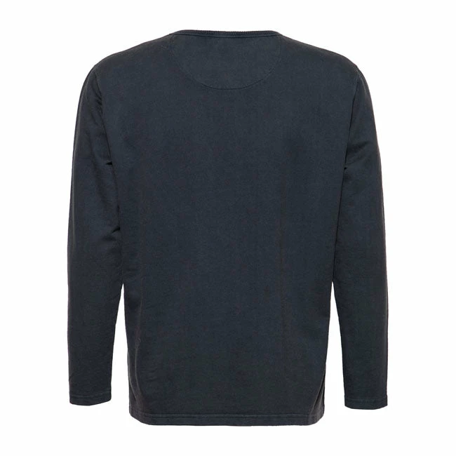 A very stylish and comfortable Enzyme washed dark grey long sleeve shirt with round neck and front print.