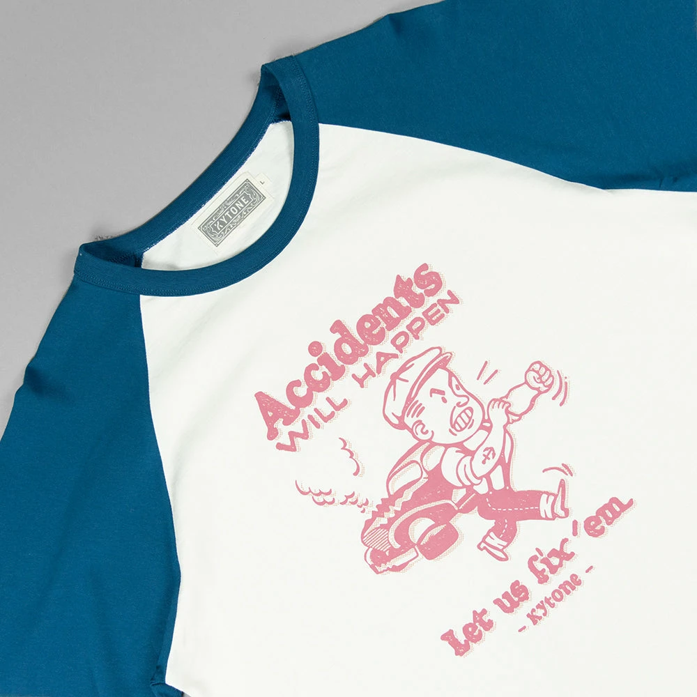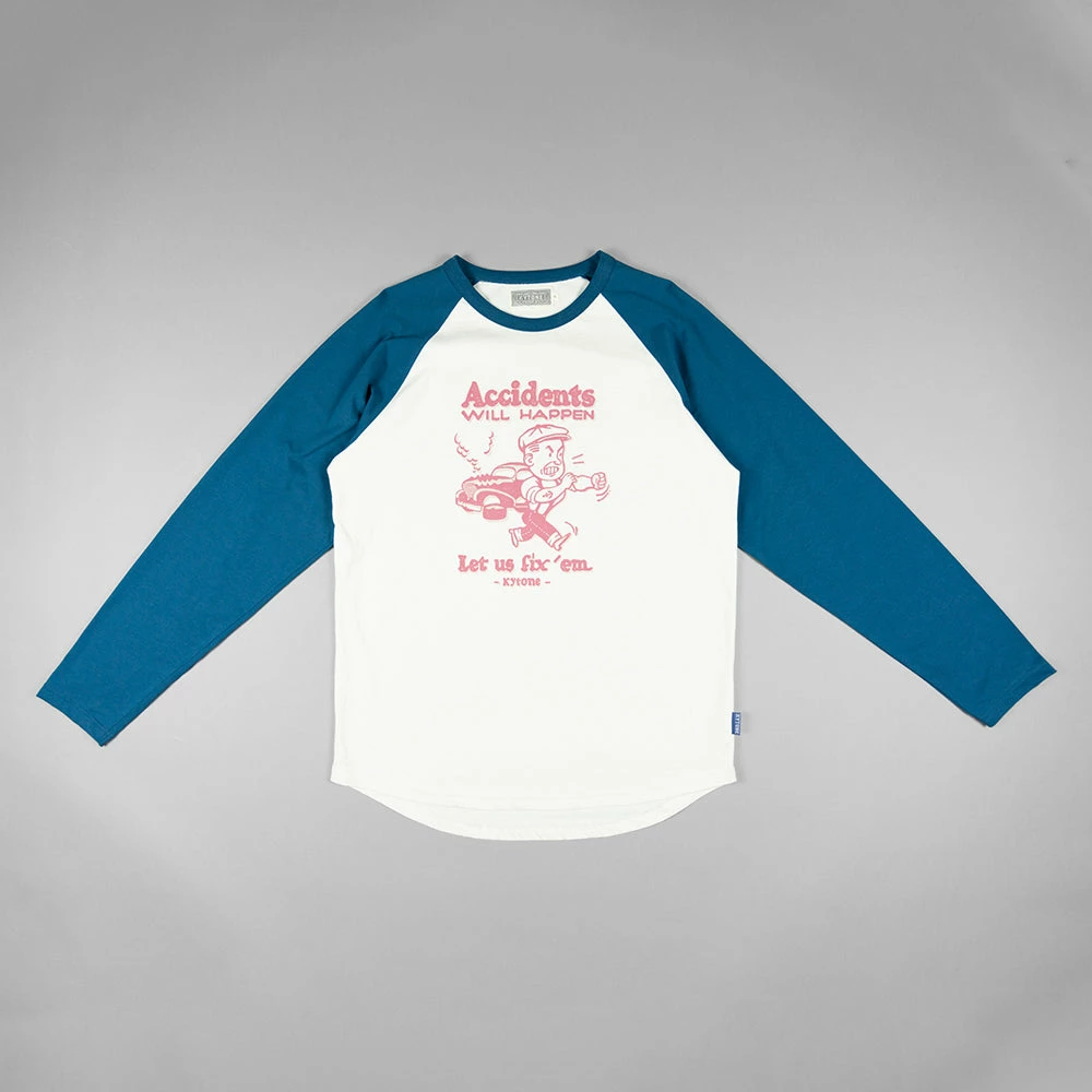 Off White Long Sleeve T-Shirt with Blue Sleeves – Longer Kytone Cut in the Back – Exclusive Kytone screen printing – 100% Cotton – 180gms – Made in Portugal