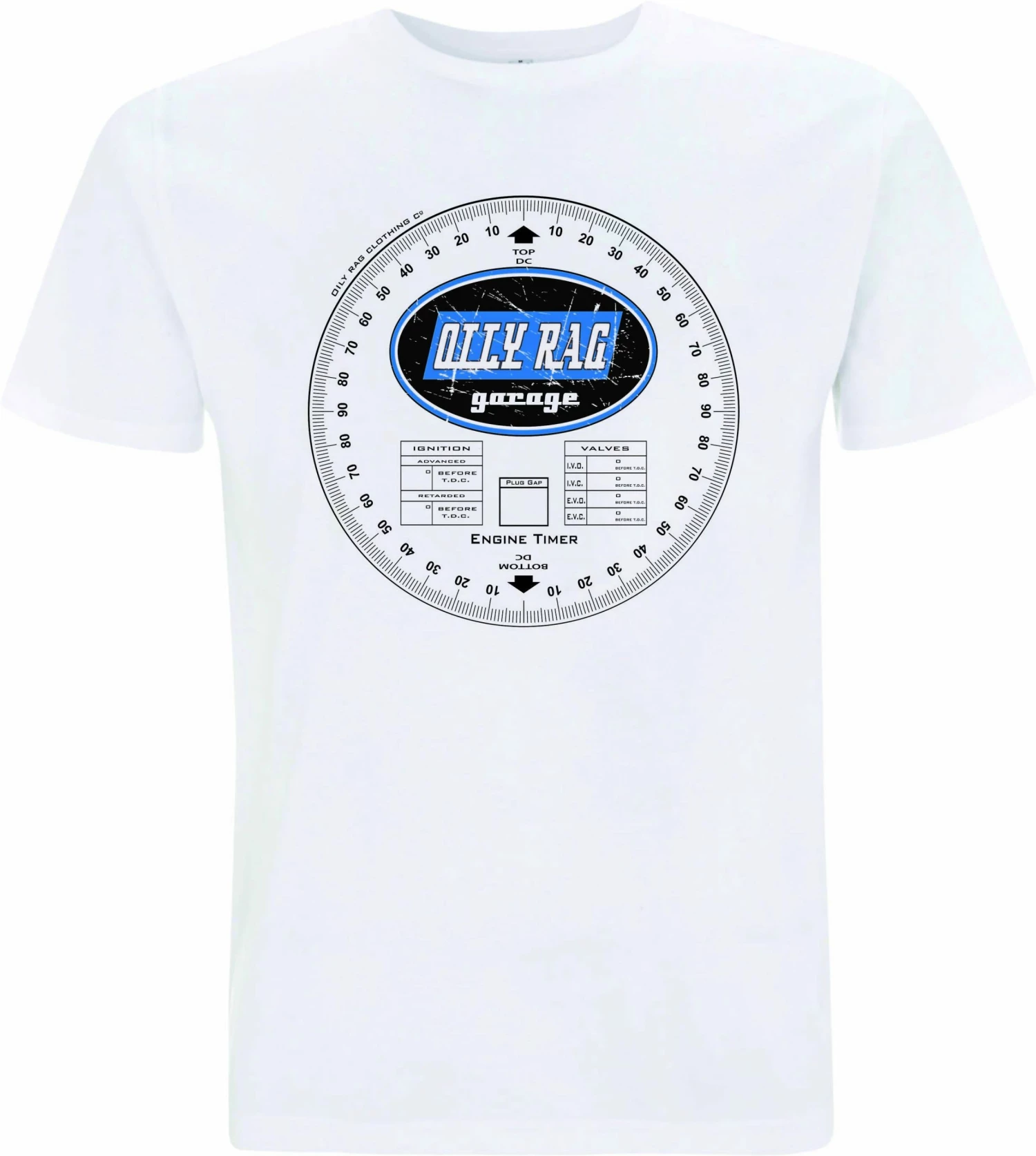 Oily Rag Clothing’s TDC Timing Disc, a t’shirt perfect for any garage die hard. Oily Rag garage Timing Disc design retro style brushed organic soft cotton t’shirt.