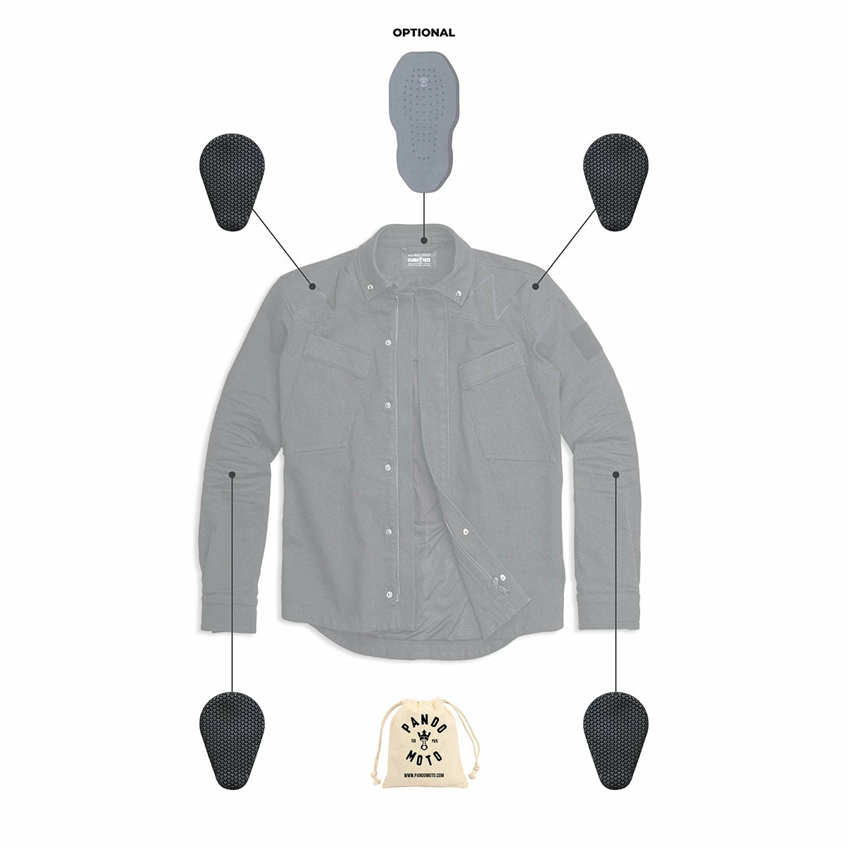 This shirt is reinforced with chain stitches and interlock seams, and has slots for armour and adjustable Velcro cuffs. All these features prove that unbeatable durability is Pando Moto’s standard at heart.