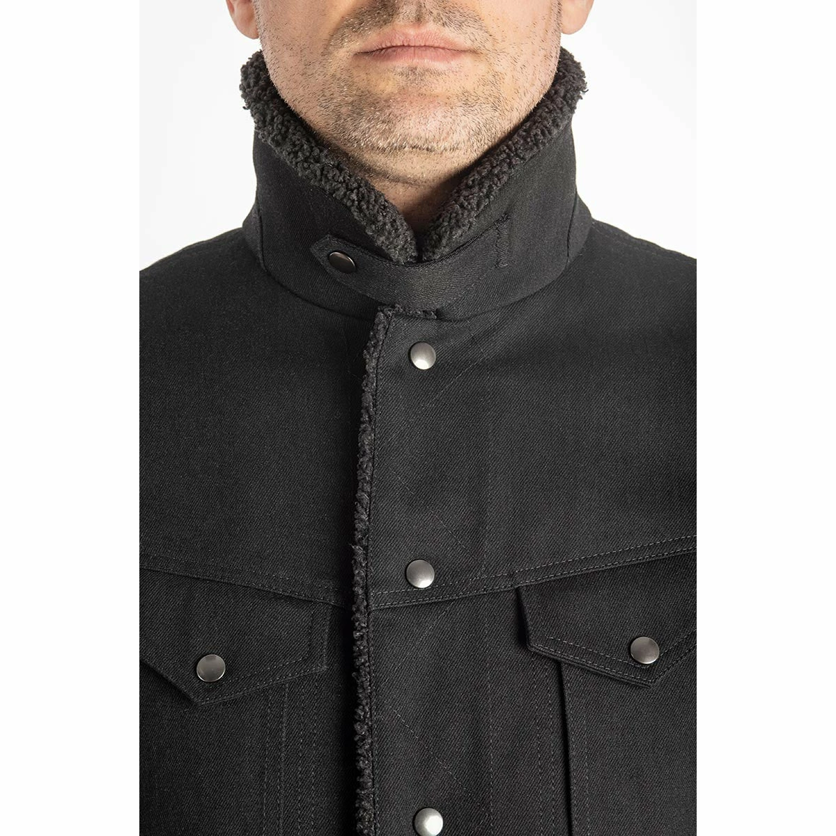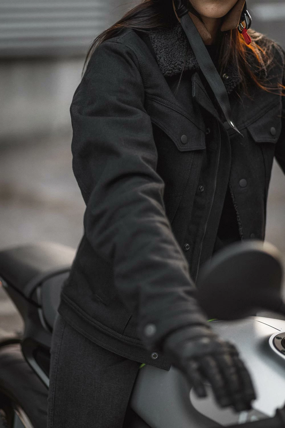 A 12oz comfort-stretch CORDURA® unisex denim motorcycle jacket with an iconic Sherpa Trucker jacket design.Â