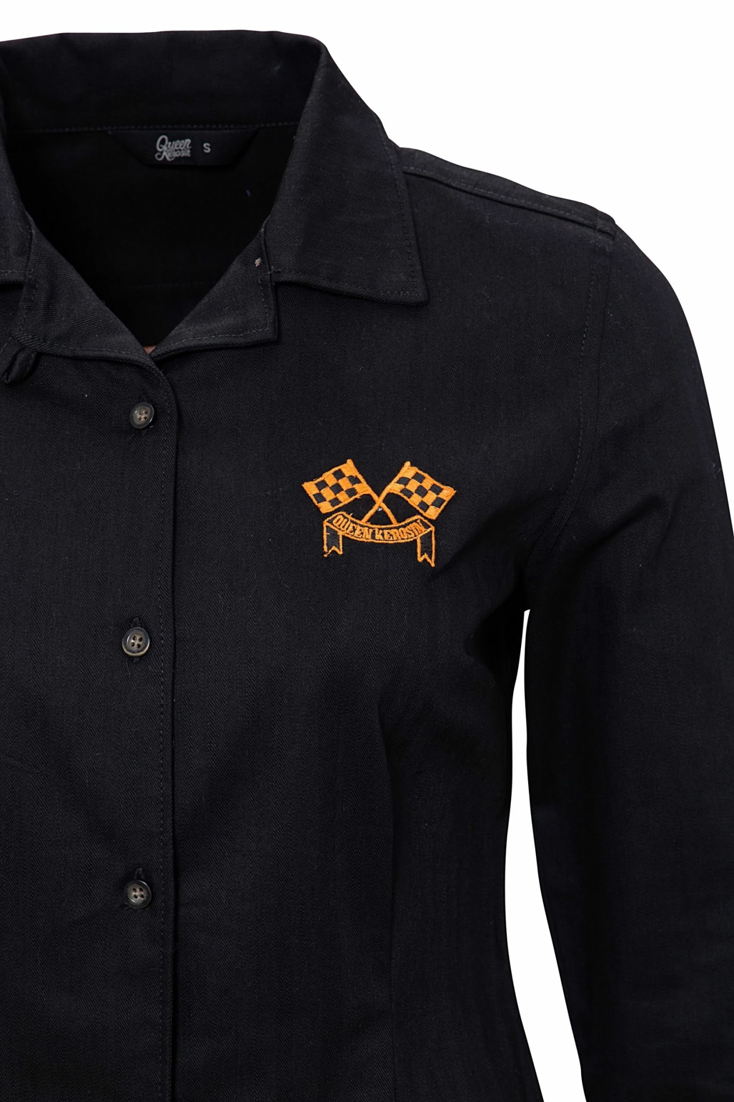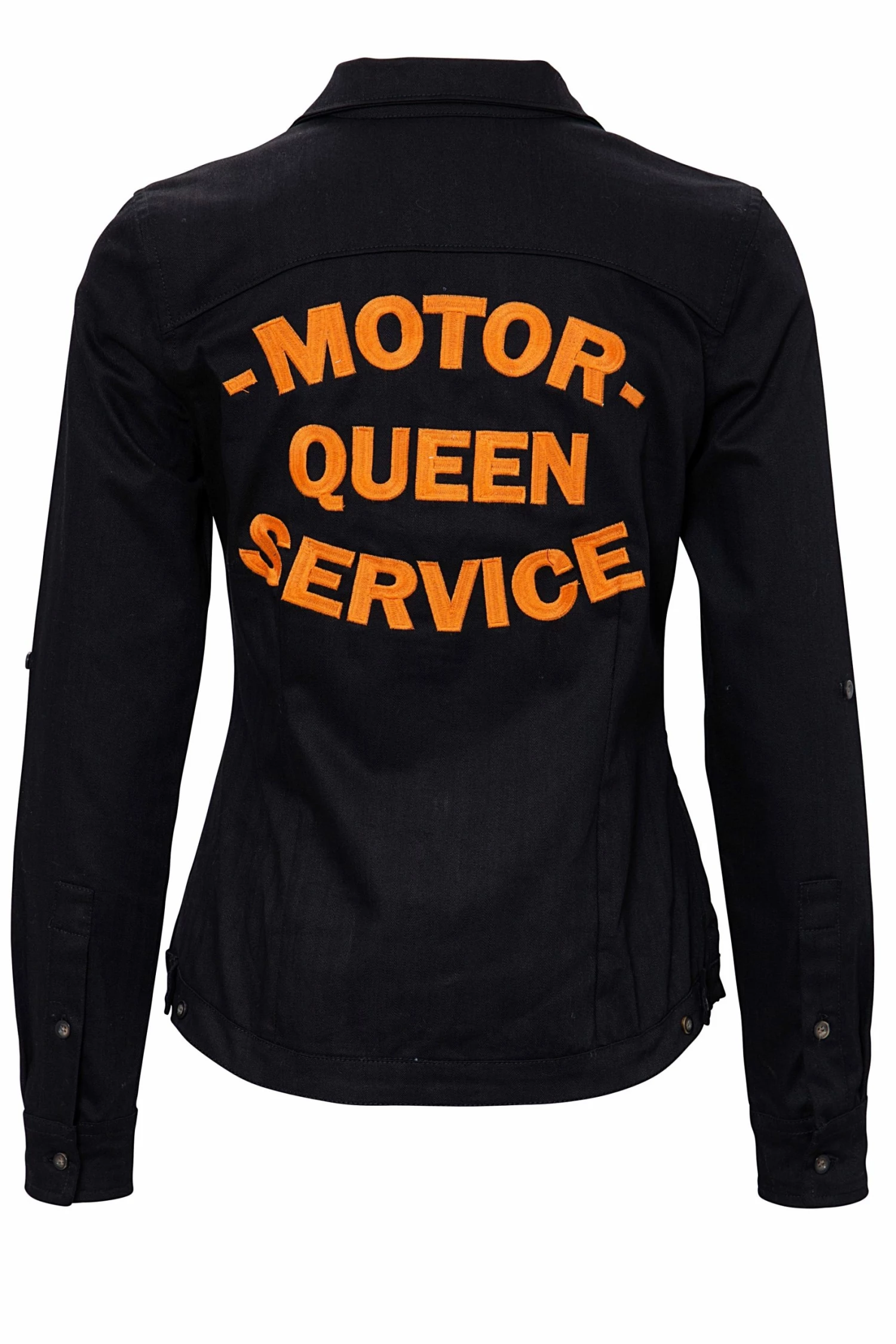 The back is beautifully embroidered with “Motor Queen Service” also with an embroidered logo on the front.
