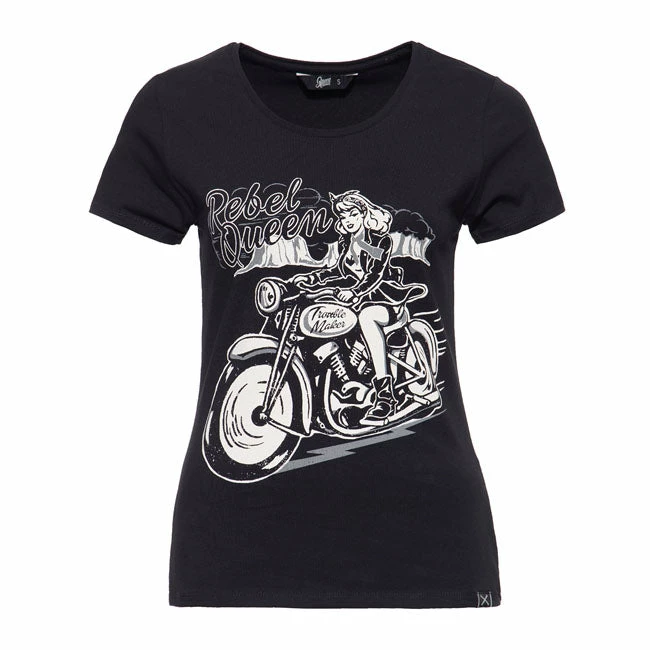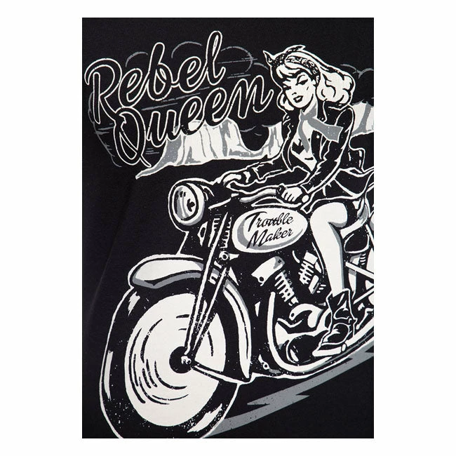 A slim fit ladies style T-shirt from the trend brand ‘Queen Kerosin’ in Black