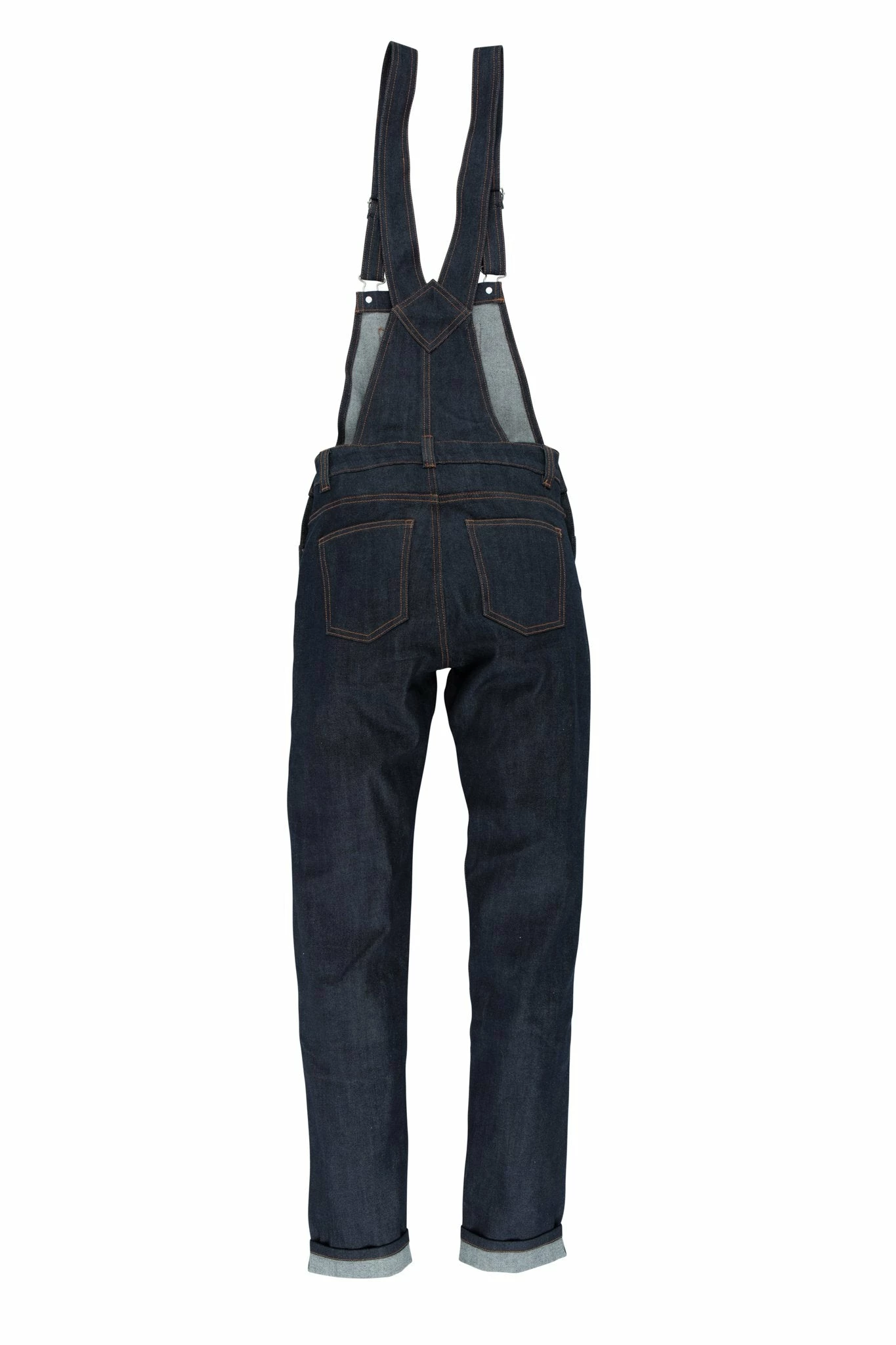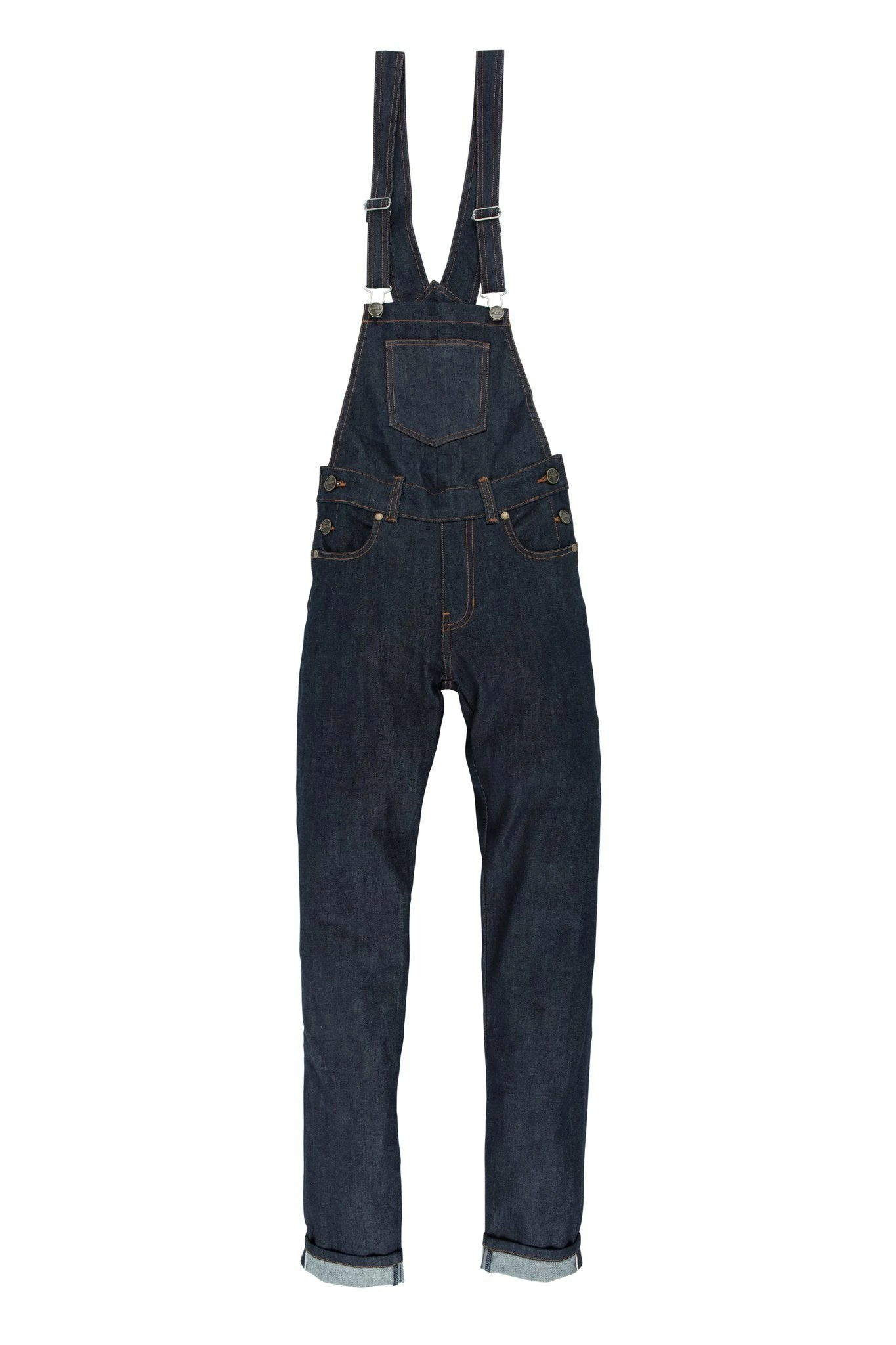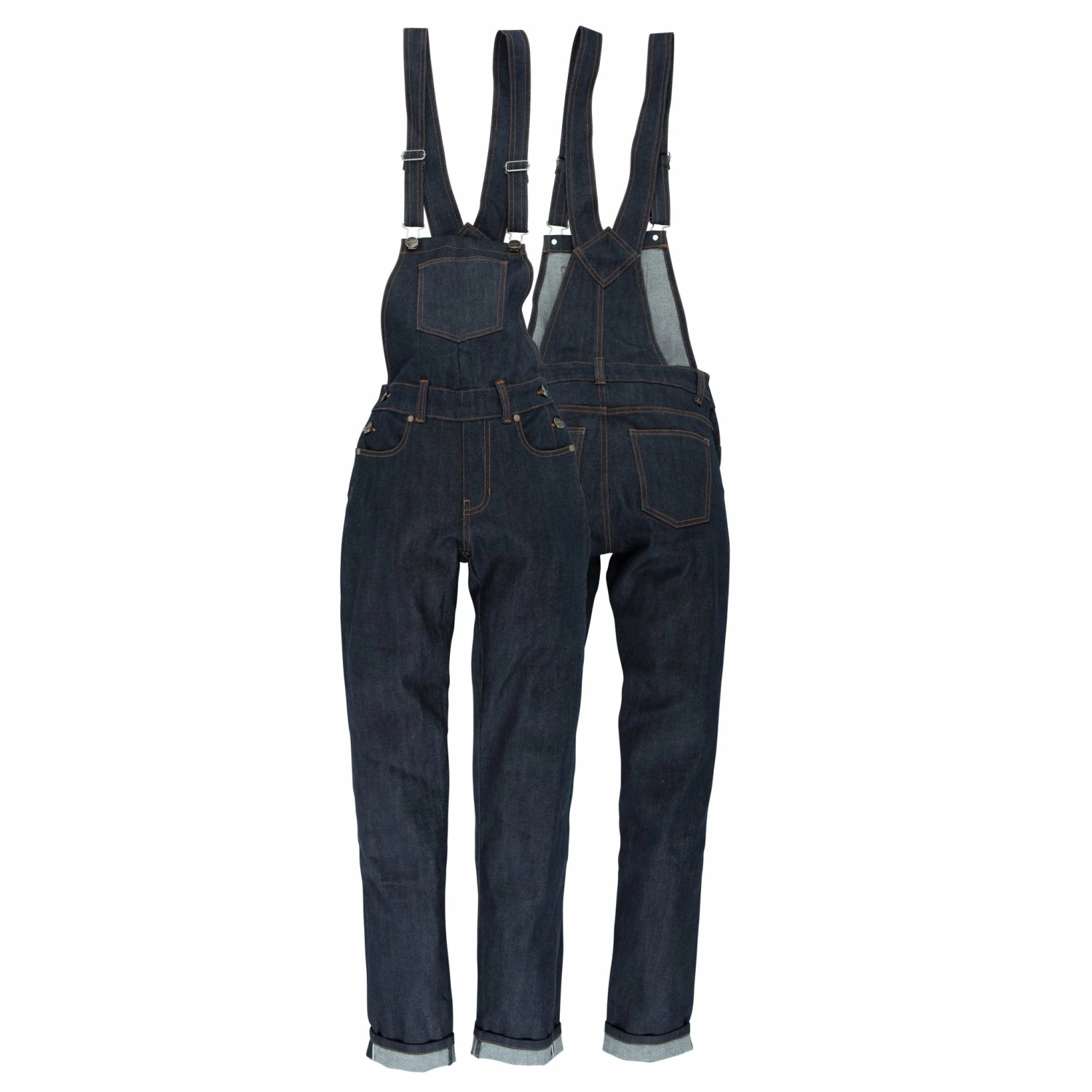 The Resurgence Gear PEKEV Ladies Selvedge Dungaree jean combines the style of the traditional work pant, a staple in most bike builders garages, with the technical features of a motorcycle riding jean.