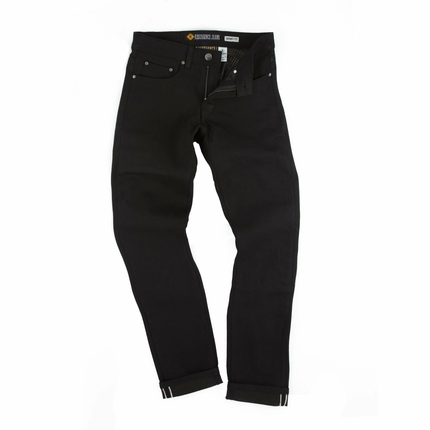 This is the BLACK version of the “skinny” leg version of the much acclaimed Resurgence Gear Cafe Racer Selvedge denim motorcycle jean. It differs in that it has a slimmer leg cut similar to a Levi’s 511, where as the regular Resurgence Gear Café Racer Selvedge jean is similar to a Levi’s 501.