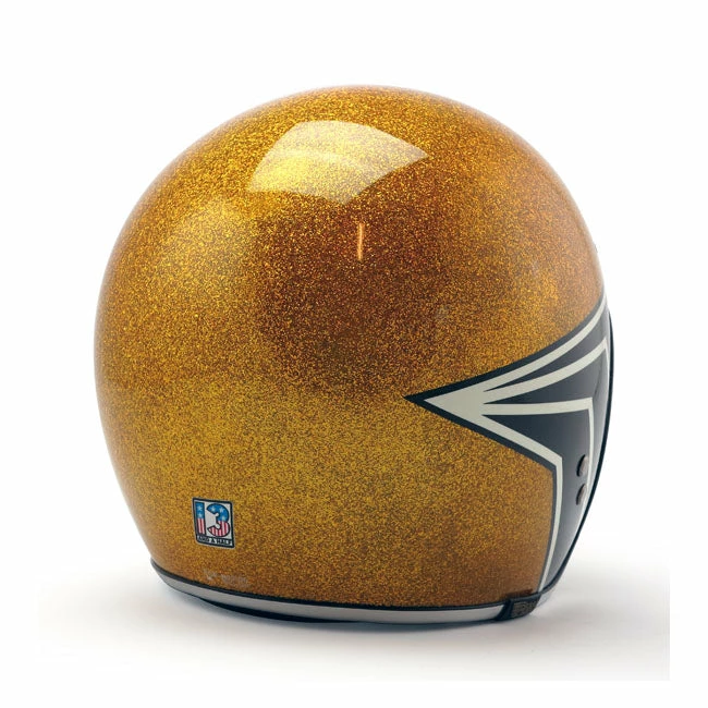 The ROEG® X 13 1/2 Skull bucket JETT helmet in ‘Gold metal flake’ is available in four Fibreglass shell sizes to keep the helmet as small as possible while keeping the ECE-R22.05 approval.