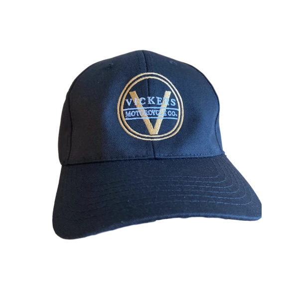 The cap itself is a 6 panel, low profile baseball style with the embroidered logo of Vickers Motorcycle Co.