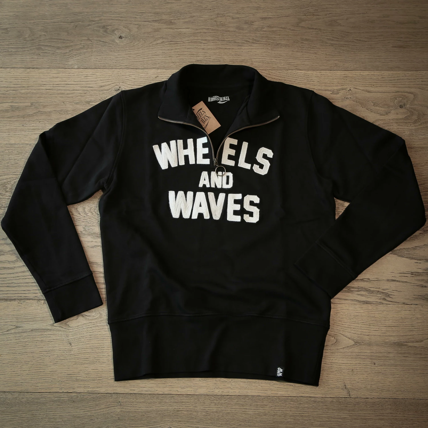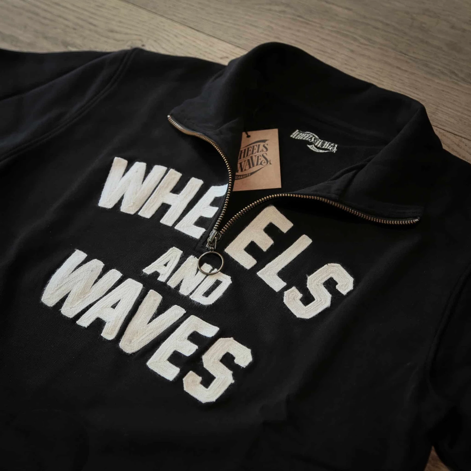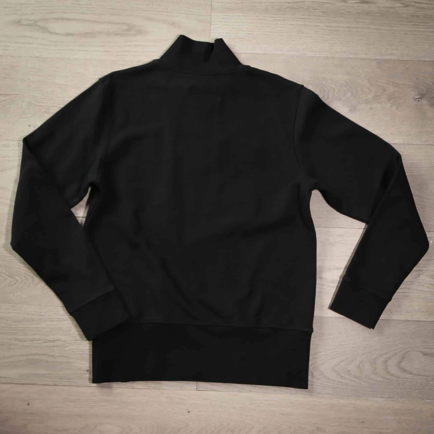 Made of a thick and comfortable cotton, this sweater is ideal for light riding. With its zipped collar, wide ribbed edges and chain stitch embroidered College script, it reinterprets the codes of the 1930s competition sweaters.Â